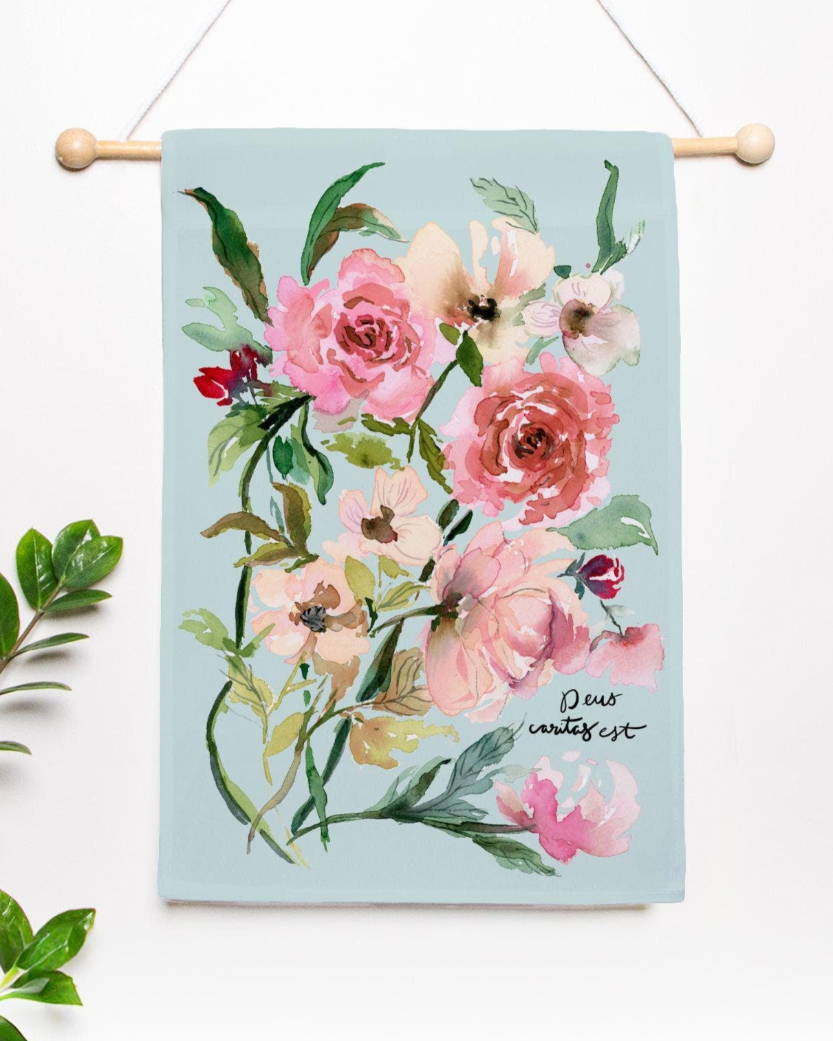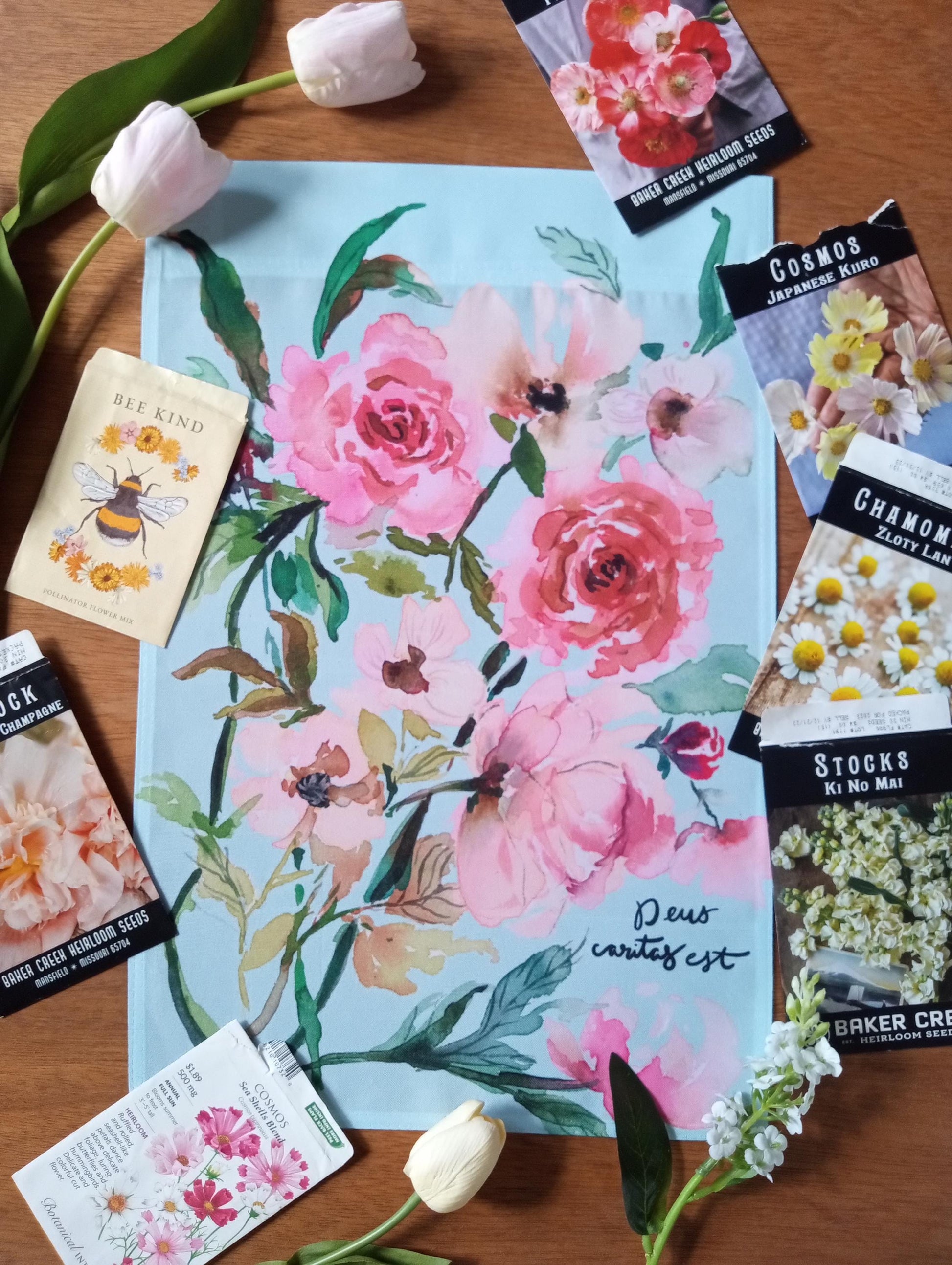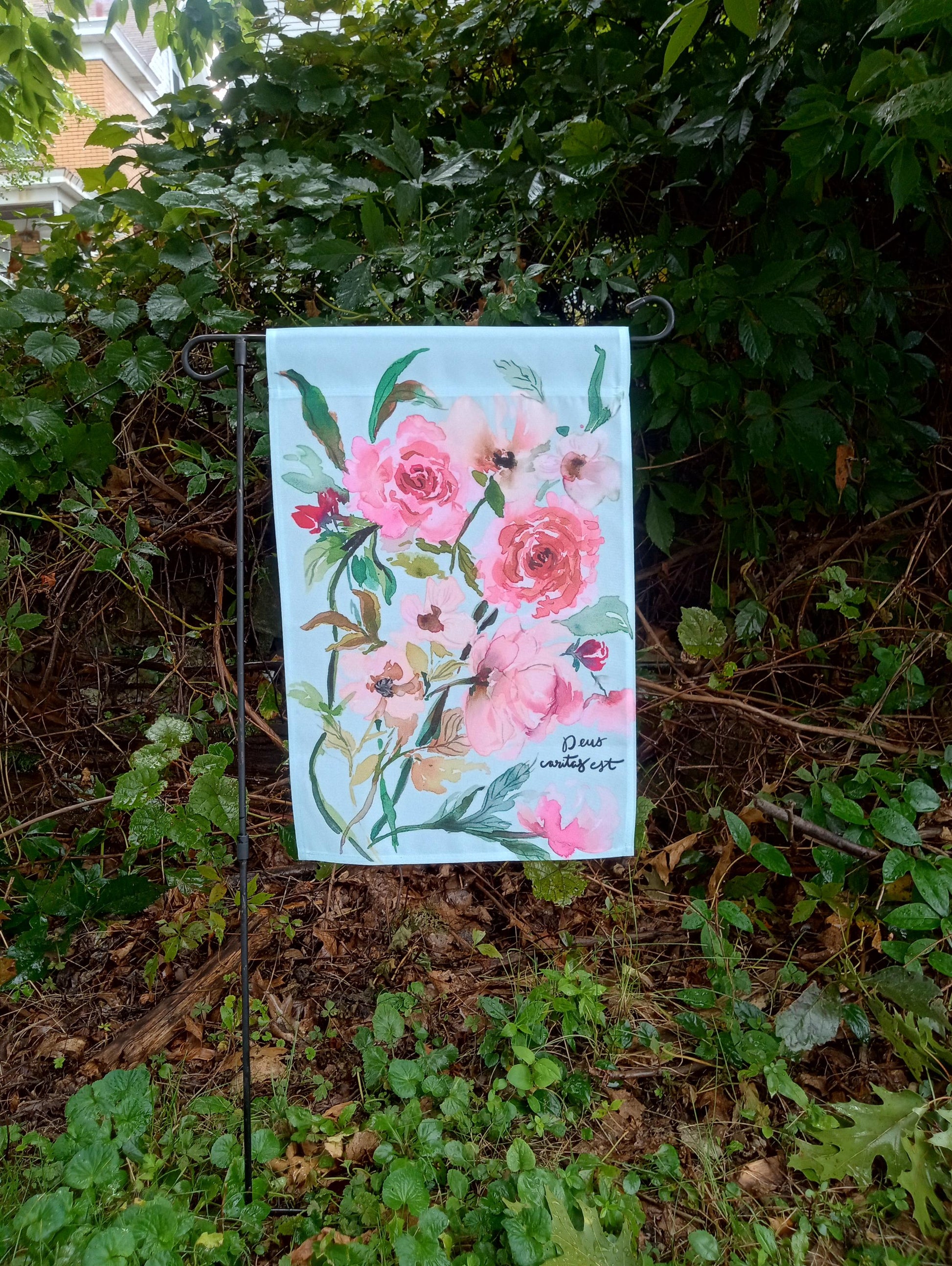 A colorful flag to brighten your front porch or a sweet addition to your Mary garden : ). This flag is lightweight and easy to swap out.