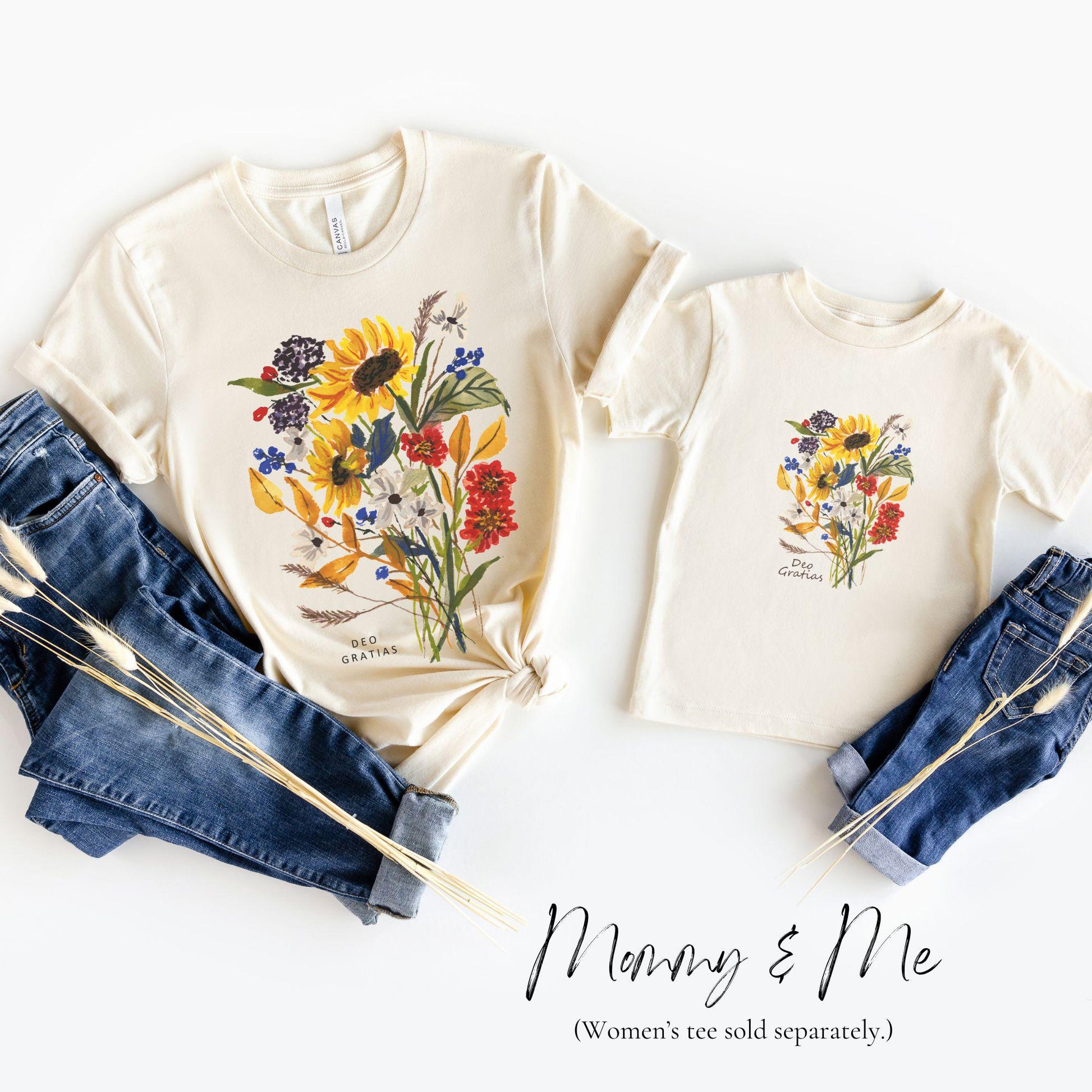 P.S. For an adorable "Mommy and Me" look, check out our ladies' Deo Gratias Sunflower t-shirt! (sold separately)