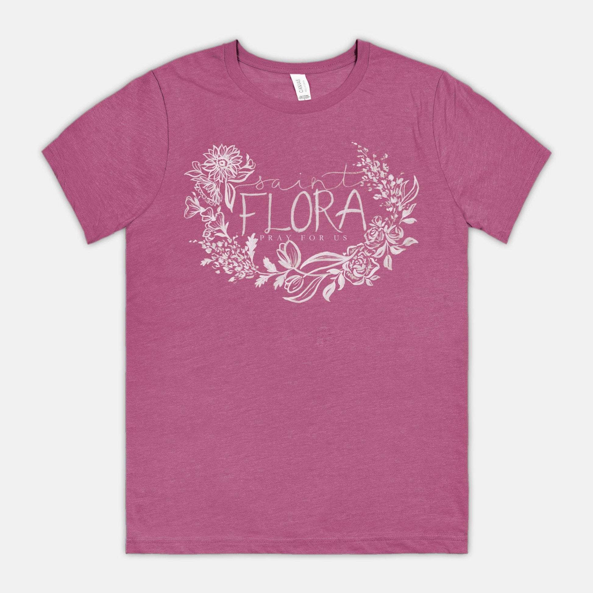 St. Flora, pray for us! This is a very comfortable, lightweight tee. Perfect for running errands, chasing toddlers, or picking flowers : ).